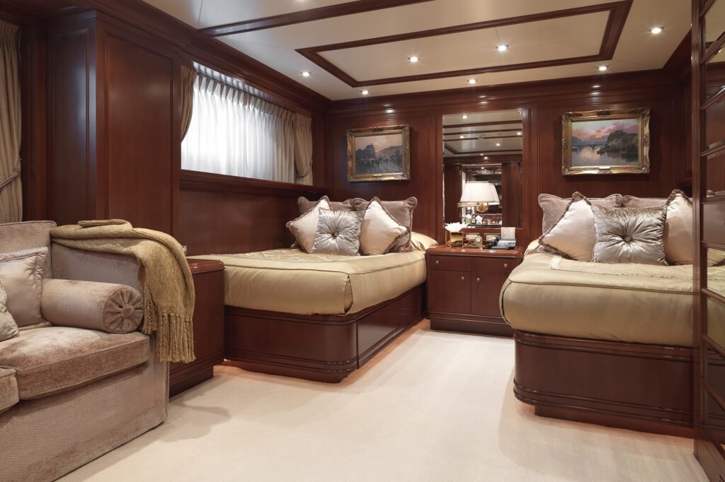 Continuously updated and maintained each year, APOGEE remains in pristine condition. She offers lavish accommodation for up to 12 guests across six beautifully designed staterooms, each featuring spacious en suite bathrooms, and includes an additional cabin for staff or guests upon request, enhancing the versatility of lodging options. Staffed by a dedicated crew of 17, APOGEE ensures a remarkable ratio of crew to guests, providing unparalleled service. Amenities include a large elevator linking all decks, zero-speed stabilizers for smooth sailing, and an array of tenders and water-sport equipment for optimal entertainment and comfort.