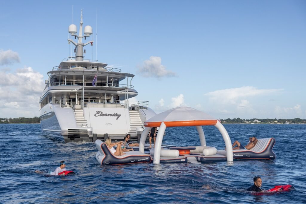 Infused with seasonal Bahamian art and a bright, casually elegant décor, Eternity creates a welcoming and stylish atmosphere. For adventure seekers, the yacht carries an impressive selection of water toys—from WaveRunners and SeaBobs to an electric hydrofoil, Flyboard, inflatable climbing wall, and a sun deck-to-sea slide.