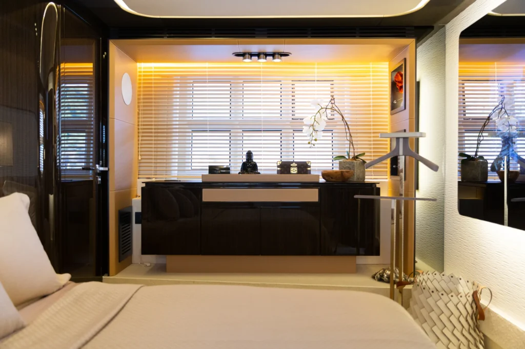 Step aboard KOMODO, a sleek 23-metre flybridge yacht from the renowned Azimut shipyard, where style meets performance. With her elegant, modern lines and exceptional cruising speed, KOMODO offers an unforgettable experience on the water. She accommodates up to 8 guests in 4 beautifully appointed cabins, including a luxurious master suite, all designed with contemporary elegance. The spacious flybridge, equipped with a bar and sun loungers, provides stunning panoramic views, while the al fresco dining area and exterior lounge ensure comfort and relaxation in the open air. Whether you’re indulging in water activities with the available Seabobs and paddleboards or enjoying the fully equipped gym, KOMODO is built for both adventure and relaxation. With a selection of water toys, a swim platform for easy access to the water, and a spacious main salon for entertaining, KOMODO offers a luxurious escape for those seeking a combination of comfort, performance, and style.