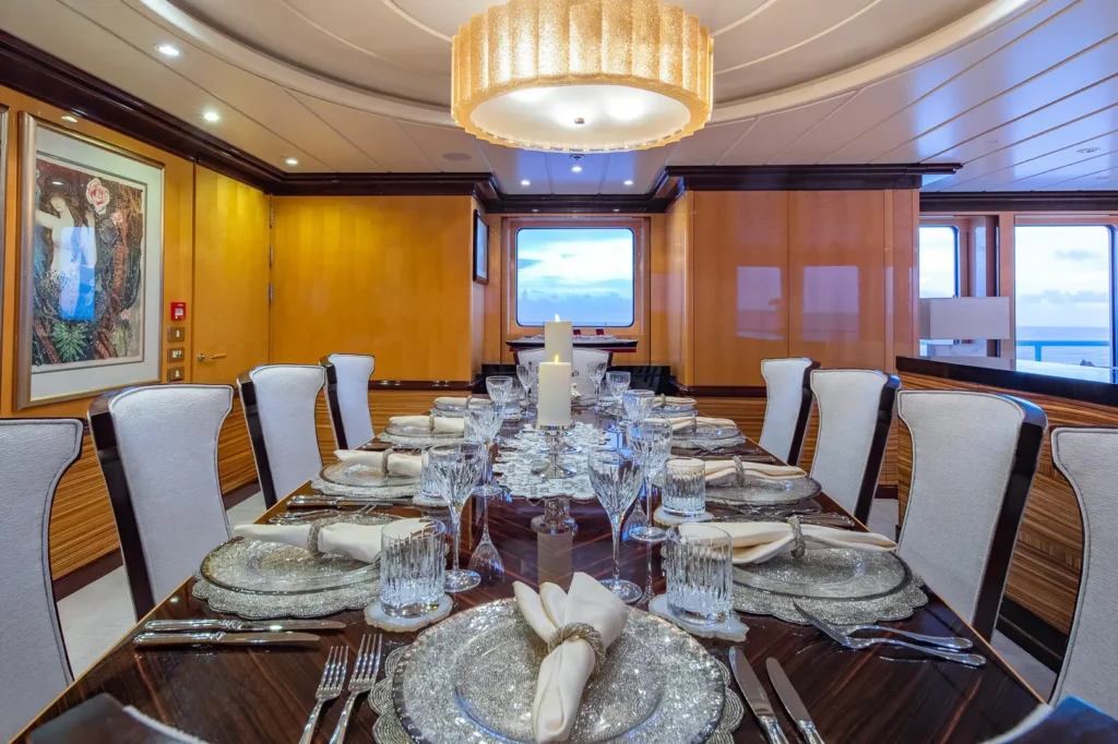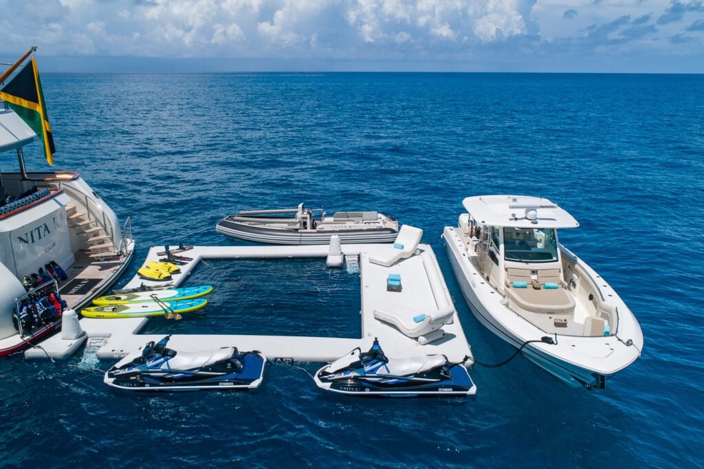 Tailored for adventurous charterers, NITA K II offers an exceptional range of water toys, including a 39ft (11.6m) tow tender, jet skis, Seabobs, a brand-new inflatable slide, wakeboards, waterskis, kayaks, a sea pool with jellyfish net, fishing gear, and more. Onboard entertainment is equally impressive, with a state-of-the-art AV system, Apple TV, iPad controls in every cabin, and Starlink Maritime ensuring high-speed connectivity throughout.
